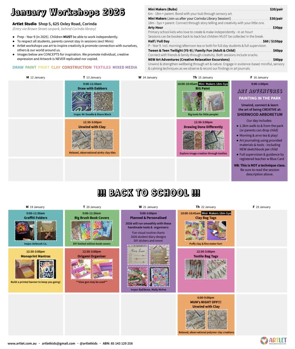 Workshops for all ages over the school holidays | Now in Corinda!