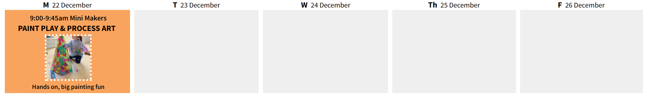 Children booked in full day workshops will also need to bring their own lunch to have between sessions.